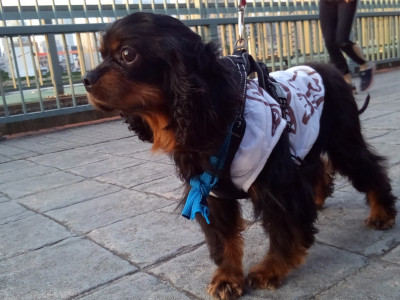 5 歳のキャバリア、ブラタンの男の子。ブリーダーでお父さん業務をこなした後、[ わんにゃんらいふ。 ] さんで保護されたようです。目と心臓に疾患があるものの、とても人懐っこい性格との事。