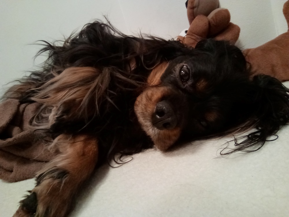 散々花梨が噛み倒したドギーちゃんの縫いぐるみをパクリ。それにしても黒い毛のわんこは、なかなかピントが合いませんねえ。これは思ってもみませんでした。