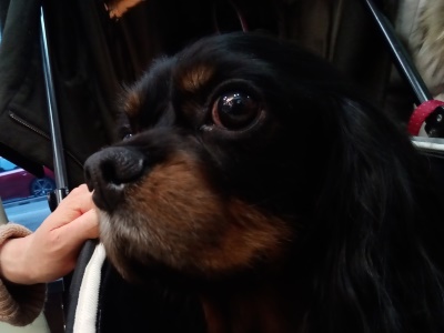 5 歳のキャバリア、ブラタンの男の子。ブリーダーでお父さん業務をこなした後、[ わんにゃんらいふ。 ] さんで保護されたようです。目と心臓に疾患があるものの、とても人懐っこい性格との事。