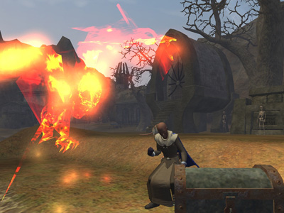 Necromancer ( 略称 = NEC。死霊使い。ペットがお供に付くのでソロも得意。 ) の彼は、現在、LV.10 で経験値を停止。ちょっとしたレア素材を使ってペットを強化し、Freeport ( 覇王さまが仕切る、表向きは悪い人たちの街。 ) 付近の初心者用狩場をうろちょろしています。