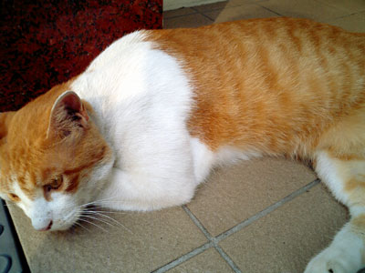おでこをなでても、何にも反応しませんでした。ぐったり。