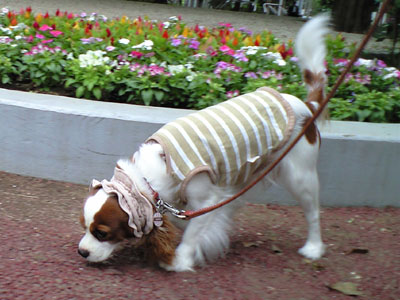 雨に降られて帰宅した時には、「 キュンキュン! 」 と鳴き続けた花梨姫。雨が上がり、やっとお散歩へ来られて、一安心です。ぐっすり寝ていたのは、内緒にしておこうね。