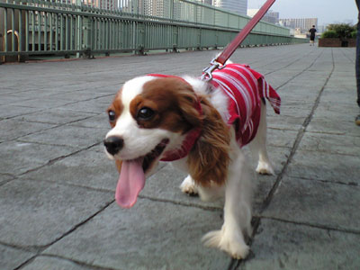 「 良い子にしていたから、お散歩に行けたわん。ぶへへへ。 」 と、怪獣顔で嬉しさを表現する花梨姫。さすがにお友達とは会えませんでしたが、ストレス発散にはなったよね。