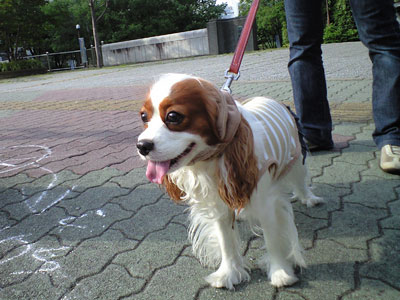 これから嫌いな肛門腺絞りが待っているとも知らずに、楽しそうに闊歩中。