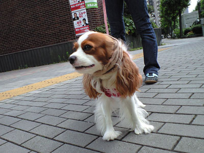 ひんやりと涼しい朝の 05:00 起き散歩と較べれば、午後のお出かけは、かなり蒸し暑いのが問題点。とは言え、お散歩大好きな花梨姫には、まったく気にならないようで……、
