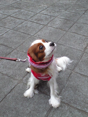 これは今朝の写真。珍しくお座りショットです。もちろん視線の先にある堤防の上には、生涯の片思いの相手、ハトさんが。キミが追いかけるから遊んでもらえないのよん。