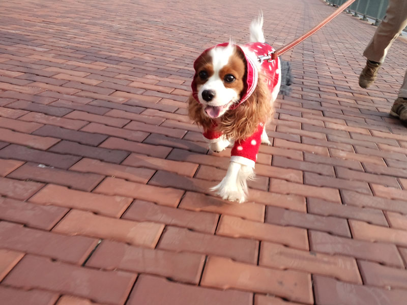 2 日続けての朝陽の下でのお散歩に、我が家の花梨姫も楽しそう。