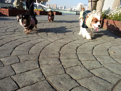 久しぶりに長い間、一緒に歩けた、アフロディーテちゃんとホルスくん。特にアフロちゃん ( 写真前の女の子ね。 ) が花梨を好いてくれていて、終始楽しそうに歩いてくれました。