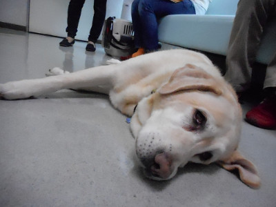 こちらはリラックスし過ぎのビルちゃん。来院中の飼い主さんたちに撫でられまくりでした。