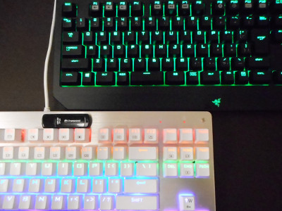 最近、味を知ってしまったメカニカルなキーボード。奥が Razer の同社オリジナルのオレンジ軸、手前が大陸コピー青軸のおもちゃです。Razer はさすがの打ち味ですよ。